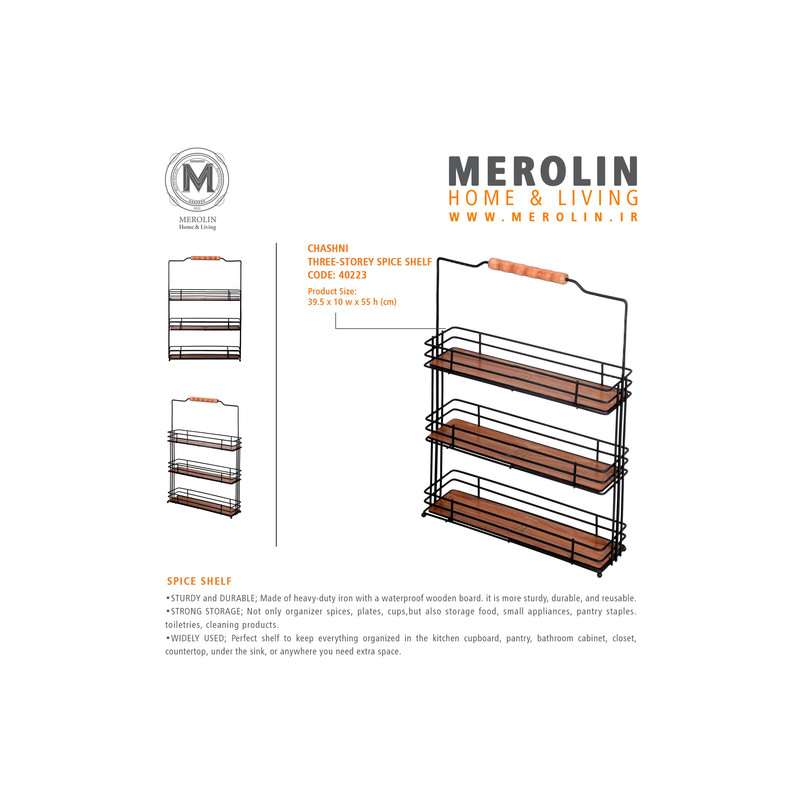 محصولات کارخانه مرولین همیشه از بهترین متریال ها بوده و کیفیت خود را بین خریداران ثابت کرده؛ جاادویه چاشنی استفاده شده از مفتول با قطر مناسب که استحکام کافی را تامین میکند، انتخابی خوب برای نگهداری سیب زمینی و پیاز داخل آشپزخانه شماست. رنگ مشکی و ترکیب آن با چوب زیبایی آنرا دوچندان کرده است.چوب های استفاده شده همگی ضد آب بوده و رنگ محصول کوره ای ضد خش و چوب ضد آب استفاده شده است که خیال خریدار را از کیفیت راحت کرده ،طراحی محصول کاملا بروز و مطابق با عکس کالا میباشد. طز