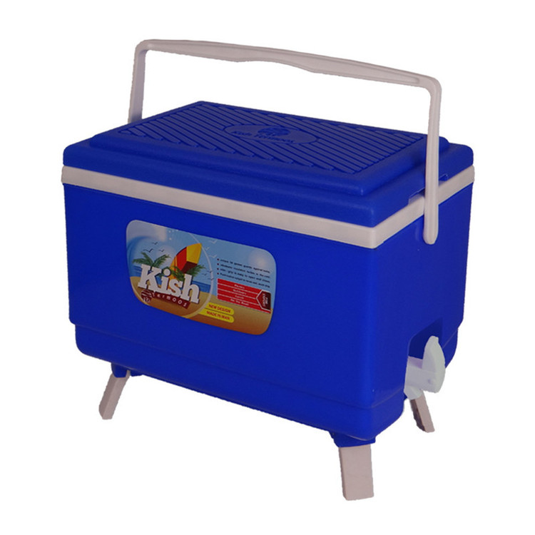 یخدان مسافرتی سایز متوسط 18 لیتری کیش ترموس دارای شیر آب و پایه های نگهدارنده می باشد همچنبن دستگیره محکمی جهت حمل آسان تر برای این یخدان تعبیه شده و قابلیت نگهداری طولانی مدت یخ و سرما و انواع خوراکی و نوشیدنی را دارد