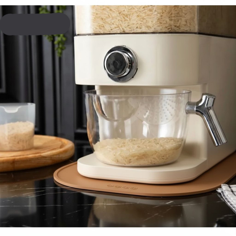 این ظرف برنج ساخت شرکت هوم کت بوده و از کیفیت ساخت بسیار خوبی برخوردار است. علاوه بر کیفیت ساخت بسیار بالای این محصول از طراحی منحصر به فردی برخوردار است که فضای آشپزخانه شما را شیک و زیبا می کند. ظرفیت این ظرف برنج 10 کیلوگرم می باشد. یک محفظه مخصوص برای قرار دادن سیر برای جلوگیری از شته برنج بر روی ظرف قرار داده شده است. پیمانه شفاف یک دسته دارد که برای جابجایی و شست و شو برنج کار را بسیار راحت کرده است و دیگر نیازی به جابجایی ظرف برای شست و شو برنج نیست. زیر ظرف برنج یک پد سیلیکونی هم طراحی و قرار داده شده است که زیبایی آن را چندین برابر می کند.